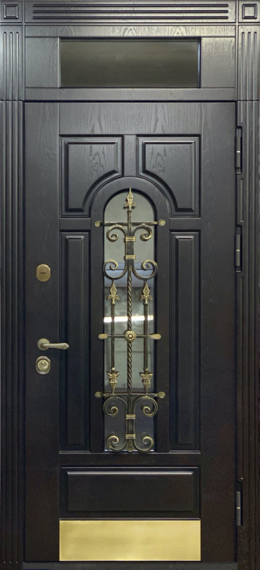 Парадная металлическая дверь с фрамугой №1 — это элегантное и надежное решение для вашего входа. Внешняя и внутренняя отделка из МДФ придает двери не только привлекательный вид, но и устойчивость к внешним повреждениям, что гарантирует долговечность и сохранение первоначального вида. Каркас из профильной трубы и металл толщиной 2 мм обеспечивают прочность и надежность конструкции. Наличие фрамуги позволяет пропускать больше света, создавая ощущение простора. Для дополнительной безопасности предусмотрены блокираторы и замки с тремя ригелями от надежных производителей, таких как Просам и Мосрентген. Варианты отделки, возможность добавления стеклопакетов, зеркала или кованых элементов позволяют адаптировать дверь под любой стиль интерьера. Парадная металлическая дверь с фрамугой №1 от производителя: быстрое изготовление и монтаж в Звенигороде, индивидуальные размеры, широкий выбор материалов и фурнитуры, официальная гарантия до 10 лет.