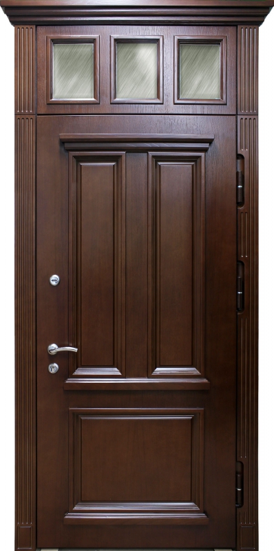 Дверь с сувальдным замком и фрамугой №34 идеально сочетает в себе стиль и надежность. Панель из натурального дерева, использованная как для внешней, так и для внутренней отделки, придает двери благородный и элегантный вид, делая её отличным выбором для помещений с классическим или современным интерьером. Каркас двери выполнен из профильной трубы 50х25 мм и усилен ребрами жесткости, что гарантирует прочность конструкции. Замки от производителей "Просам" и "Мосрентген" с тремя ригелями обеспечивают высокий уровень безопасности. Дверь оснащена уплотнителями с двумя контурами, что гарантирует отличную герметичность, а возможность замены замков и добавления кованых элементов делает её адаптируемой под любые требования. Кроме того, дверь можно дополнить зеркалом, стеклопакетом или видеодомофоном для еще большего комфорта. Входная дверь с сувальдным замком и фрамугой №34 от производителя: быстрое изготовление и монтаж в Звенигороде, индивидуальные размеры, широкий выбор материалов и фурнитуры, официальная гарантия до 10 лет.