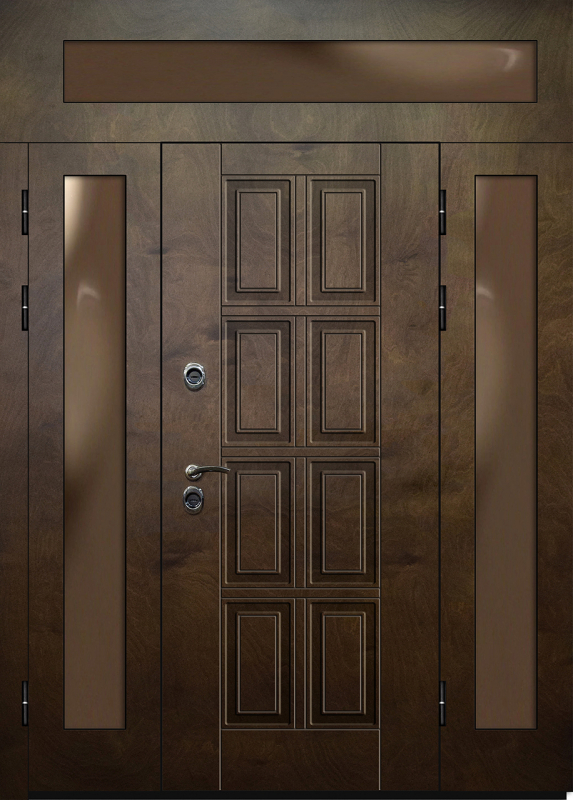 Входная дверь эконом класса с фрамугой №11 сочетает в себе надежность и доступность. Такая дверь прекрасно подходит для установки в местах с умеренной нагрузкой, обеспечивая необходимую защиту и эстетичный внешний вид. Внешняя и внутренняя отделка из МДФ с ПВХ-покрытием обладает хорошей устойчивостью к механическим повреждениям, а также отличается долговечностью. Конструкция из профильной трубы 50х25 мм и металлического листа толщиной 2 мм делает дверь прочной и устойчивой к нагрузкам. Дополнительные ребра жесткости усиливают ее стойкость. Резиновый уплотнитель с двумя контурами гарантирует защиту от холода и пыли, однако, для повышения шумо- и теплоизоляции можно заказать дополнительные опции. Эта модель — идеальный выбор для тех, кто ищет сбалансированное решение по разумной цене. Входная дверь эконом класса с фрамугой №11 от производителя: быстрое изготовление и монтаж в Звенигороде, индивидуальные размеры, широкий выбор материалов и фурнитуры, официальная гарантия до 10 лет.