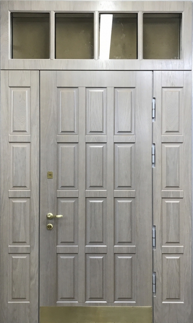 Входная дверь с остекленной фрамугой №1 привлекает внимание благодаря стильному и современному дизайну. Ее внешняя и внутренняя отделка из МДФ выглядит элегантно и долговечно, а также устойчива к механическим повреждениям, таким как царапины и вмятины. Каркас из профильной трубы и металл толщиной 2 мм гарантируют прочность и надежность. Наличие фрамуги позволяет создать эффектное освещение и визуально расширяет пространство, при этом сохранение теплоизоляции обеспечено двумя контурами резинового уплотнителя. Блокираторы и качественные замки, такие как Просам и Мосрентген, надежно защищают от взлома. Возможность дополнить дверь стеклопакетом, зеркалом или коваными элементами делает эту модель еще более универсальной для различных интерьеров. Входная дверь с остекленной фрамугой №1 от производителя: быстрое изготовление и монтаж в Звенигороде, индивидуальные размеры, широкий выбор материалов и фурнитуры, официальная гарантия до 10 лет.