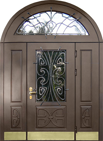 Арочная двустворчатая входная со стеклом дверь №32
