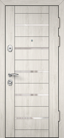 Прочная стальная конструкция с листом металла толщиной 2 мм и надежными ребрами жесткости делает эту модель отличным вариантом для квартир, частных домов и офисов. Каркас и полотно выполнены из профильной трубы, что обеспечивает долговечность и сопротивление взлому, а двойной контур уплотнения защищает от сквозняков и постороннего шума. Отделка с обеих сторон выполнена накладками из МДФ, которые не только придают аккуратный и современный внешний вид, но и отличаются стойкостью к царапинам и ударам. Стальная входная дверь в квартиру №160 может быть изготовлена в любых размерах и вариантах открывания, а систему безопасности дополняют два замка российского производства: сувальдный Просам и цилиндровый Мосрентген, каждый с тремя мощными ригелями. По желанию заказчика возможна установка зеркала, стеклопакета, ковки или умного замка, что превращает изделие из просто двери в продуманное решение для комфортной и безопасной жизни. Стальная входная дверь в квартиру №160 от производителя: быстрое изготовление и монтаж в Звенигороде, индивидуальные размеры, широкий выбор материалов и фурнитуры, официальная гарантия до 10 лет.