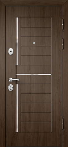 Надежность металлической конструкции и аккуратный внешний вид делают эту модель востребованной для самых разных помещений — от уютной квартиры до делового офиса. Полотно и коробка выполнены из прочной профильной трубы с ребрами жесткости и дополнены стальным листом толщиной 2 мм, что обеспечивает стойкость ко взлому и долгий срок службы. Отделка из МДФ с ПВХ-покрытием выглядит стильно и при этом устойчива к мелким повреждениям и истиранию, сохраняя свежесть поверхности даже при активной эксплуатации. Дверь входная квартира №170 комплектуется двумя надежными замками российского производства — сувальдным Просам и цилиндровым Мосрентген, каждый с тремя ригелями. Два контура резинового уплотнителя помогают защититься от сквозняков, а встроенные блокираторы усиливают безопасность. При необходимости модель легко адаптируется под любой размер и может быть дополнена зеркалом, стеклопакетом или современным умным замком, превращаясь в функциональное решение под конкретные задачи. Дверь входная квартира №170 от производителя: быстрое изготовление и монтаж в Звенигороде, индивидуальные размеры, широкий выбор материалов и фурнитуры, официальная гарантия до 10 лет.