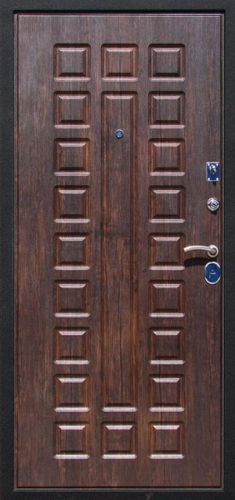 Входная дверь в квартиру ширина стандарт №41 создана как универсальное решение для городских квартир, частных домов и офисных помещений. Конструкция на основе профильной трубы и листа стали толщиной 2 мм обеспечивает прочность и устойчивость к взлому, а рёбра жёсткости добавляют дополнительную надёжность. С обеих сторон дверь облицована плитами МДФ, которые придают поверхности аккуратный внешний вид и защищают её от мелких повреждений. Такой вариант отделки отличается практичностью: панели устойчивы к влаге, сохраняют форму и цвет, даже если дверь эксплуатируется ежедневно. Два контура резиновых уплотнителей не дают проникнуть сквознякам и уличному шуму, а терморазрыв в коробке и полотне препятствует промерзанию в холодное время года. Благодаря стандартной ширине установка не требует сложных подготовительных работ, а при необходимости дверь может быть изготовлена в индивидуальном размере. Входная дверь в квартиру ширина стандарт №41 от производителя: быстрое изготовление и монтаж в Звенигороде, индивидуальные размеры, широкий выбор материалов и фурнитуры, официальная гарантия до 10 лет.