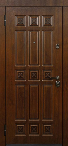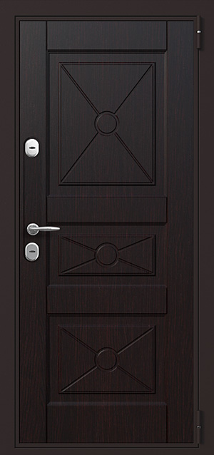 Дверь входная квартира №7 сочетает в себе прочную стальную основу и изысканный внешний вид, который подчеркивает отделка шпонированным МДФ снаружи и массивом дерева изнутри. Такое решение делает её уместной не только в городской квартире, но и в коттедже или офисе, где важно совместить надежность с презентабельным обликом. Каркас и полотно из профильной трубы, усиленные ребрами жесткости и стальным листом толщиной 2 мм, обеспечивают высокую защиту от механических воздействий. Два контура резинового уплотнителя снижают проникновение сквозняков и шума, создавая дополнительный комфорт. Натуральный массив внутри придает двери особый шарм, а шпонированная отделка устойчива к царапинам и долго сохраняет свой первоначальный вид. Модель №7 — это надежное решение для тех, кто ценит не только безопасность, но и благородный дизайн. Дверь входная квартира №7 от производителя: быстрое изготовление и монтаж в Звенигороде, индивидуальные размеры, широкий выбор материалов и фурнитуры, официальная гарантия до 10 лет.