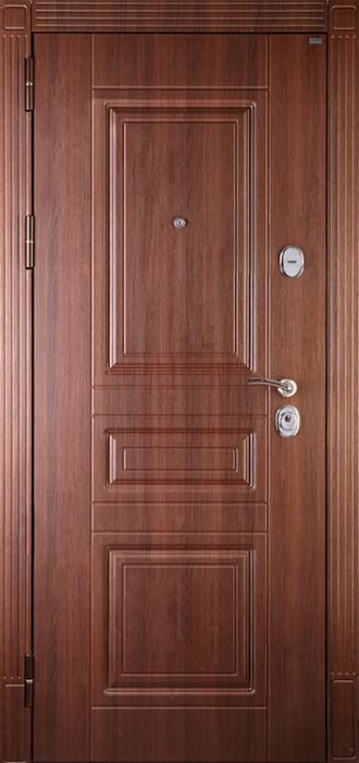 Дверь уличная с терморазрывом в частный дом №44 – отличное решение для коттеджей и частных домов, где важны не только безопасность, но и теплоизоляция. Технология терморазрыва в коробке и полотне эффективно удерживает тепло внутри и предотвращает образование конденсата. Внешняя и внутренняя отделка из панелей МДФ с ПВХ покрытием придают двери современный вид и обеспечивают устойчивость к внешним воздействиям, таким как механические повреждения и изменения температуры. Конструкция из металла толщиной 1,5 мм с усилением профильными трубами 40x25 мм делает дверь прочной и надежной. Шумоизоляция из пенопласта повышенной плотности дополнительно защищает от внешнего шума. Замки Kale Kilit с тремя ригелями обеспечат высокую степень безопасности вашего дома. Дверь уличная с терморазрывом в частный дом №44 от производителя: быстрое изготовление и монтаж в Звенигороде, индивидуальные размеры, широкий выбор материалов и фурнитуры, официальная гарантия до 10 лет.
