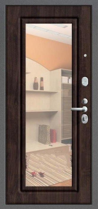 Каркас из профильной трубы и стальной лист толщиной 2 мм обеспечивают прочность конструкции и устойчивость к взлому, а два контура уплотнителей защищают помещение от сквозняков и уличного шума. Входная дверь в квартиру с зеркалом №10 выделяется сочетанием практичного молоткового напыления снаружи и аккуратной плиты МДФ внутри. Такое покрытие не боится механических повреждений и перепадов температуры, долго сохраняя первоначальный вид. Зеркало на внутренней стороне делает прихожую светлее и визуально просторнее, заменяя полноценное настенное. Дополнительные блокираторы и система ребер жёсткости усиливают надежность. Возможность изготовления в любых размерах позволяет адаптировать модель под особенности квартиры, офиса или частного дома, сохранив баланс между эстетикой и безопасностью. Входная дверь в квартиру с зеркалом №10 от производителя: быстрое изготовление и монтаж в Звенигороде, индивидуальные размеры, широкий выбор материалов и фурнитуры, официальная гарантия до 10 лет.