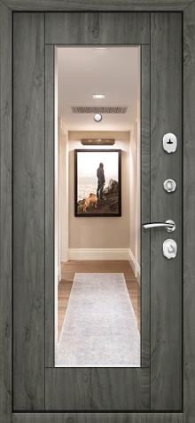 Эта модель создана для тех, кто ценит надежность металла и продуманную эстетику. Снаружи дверь защищена порошковой окраской, стойкой к атмосферным воздействиям и царапинам, что делает её долговечной даже при установке на улицу. Внутри используется МДФ с пленкой ПВХ, благодаря чему полотно выглядит аккуратно и легко вписывается в интерьер квартиры или офиса. Особое внимание заслуживает железная дверь с зеркалом №70: встроенное зеркало делает пространство прихожей визуально шире и добавляет практичности в повседневное использование. Конструкция выполнена из профильных труб и стали толщиной 2 мм, усиленных ребрами жесткости. Два контура уплотнителей надежно защищают от сквозняков, а терморазрыв в коробке и полотне предотвращает промерзание зимой. Дверь комплектуется замками российского производства с ригельной системой, при желании можно установить замки премиальных марок или смарт-модели, а также дополнить изделие видеодомофоном или декоративными элементами. Железная дверь с зеркалом №70 от производителя: быстрое изготовление и монтаж в Звенигороде, индивидуальные размеры, широкий выбор материалов и фурнитуры, официальная гарантия до 10 лет.