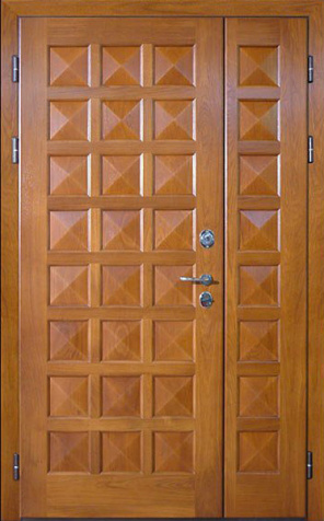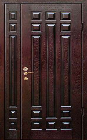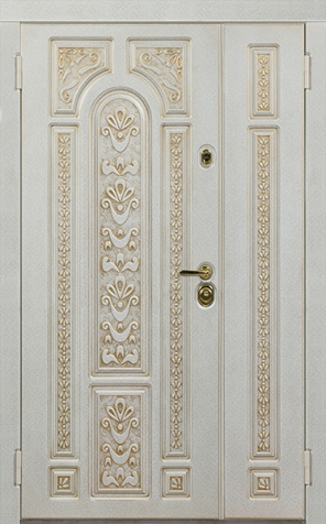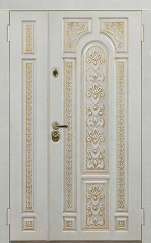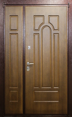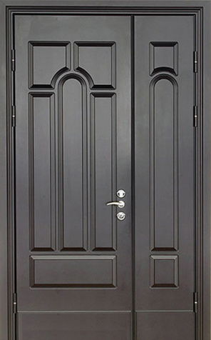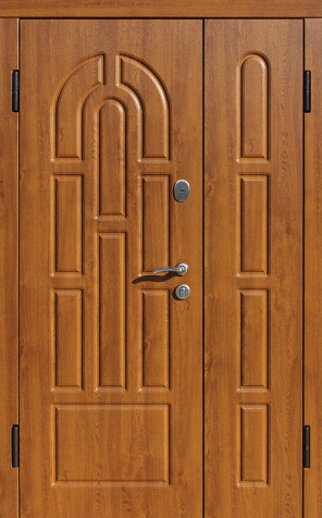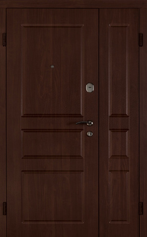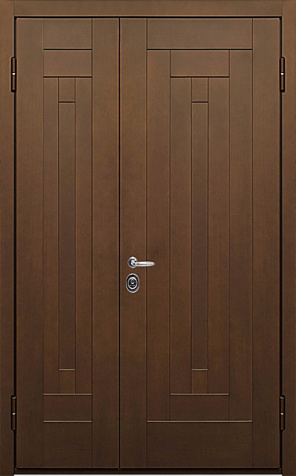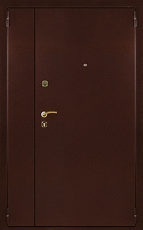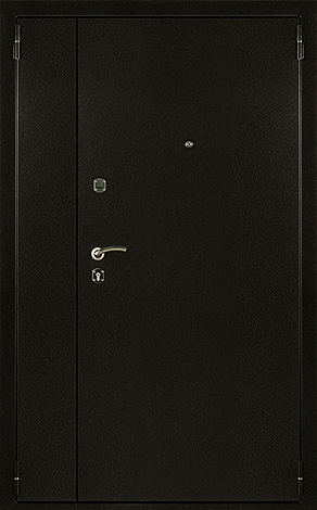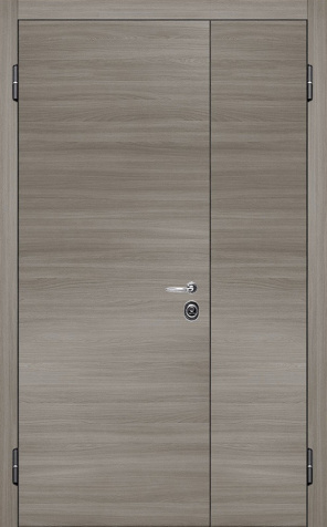Базовая схема — активная и пассивная створки в усиленной коробке. Пассивная фиксируется верхним и нижним ригелями или скрытыми шпингалетами; это даёт жёсткость и исключает самопроизвольное открывание. Замковая группа подбирается под сценарии: основной замок + вспомогательный, ручки, броненакладки, глазок или видеоглазок.