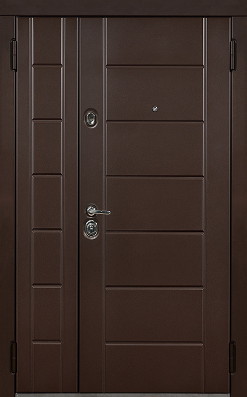 Двухстворчатая входная дверь в современном стиле хай-тек №13 сочетает в себе минимализм и практичность. Панели МДФ с ПВХ-покрытием, использованные как для внешней, так и для внутренней отделки, обладают высокой стойкостью к механическим повреждениям, таким как царапины и вмятины, что делает дверь идеальным решением для помещений с высокой проходимостью. Стильный внешний вид, выполненный в современном стиле, легко впишется в интерьер любого современного здания. Двухстворчатая входная дверь в современном стиле хай-тек №13 от производителя: быстрое изготовление и монтаж в Звенигороде, индивидуальные размеры, широкий выбор материалов и фурнитуры, официальная гарантия до 10 лет.