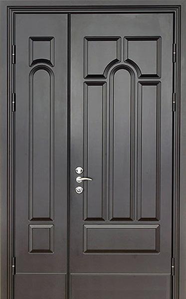 Металлическая двухстворчатая дверь для дома цвета графит №27 – это стильное и надежное решение для вашего жилья. Внешняя и внутренняя отделка выполнены из МДФ, что придает двери изысканный вид и увеличивает её стойкость к механическим повреждениям. Цвет графит придаёт двери современный и элегантный оттенок, который легко впишется в интерьер как частных домов, так и современных офисов. Металлическая двухстворчатая дверь для дома цвета графит №27 от производителя: быстрое изготовление и монтаж в Звенигороде, индивидуальные размеры, широкий выбор материалов и фурнитуры, официальная гарантия до 10 лет.