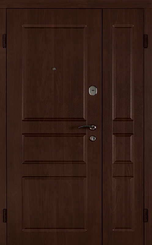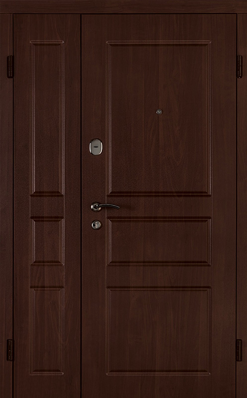 Коричневая входная полуторная дверь с филенчатой створкой №4 – это надежное и стильное решение для вашего дома или офиса. Внешняя и внутренняя отделка из МДФ с ПВХ обеспечивает долговечность и устойчивость к повреждениям, сохраняя при этом элегантный внешний вид. Прочные материалы конструкции, такие как профильная труба 50х25 мм и лист металла толщиной 2 мм, гарантируют стабильность и безопасность. Ребра жесткости из профильных труб 40х25 мм усиливают дверное полотно, а уплотнение с двумя контурами надежно защищает от внешних факторов. Несмотря на отсутствие терморазрыва, в двери реализованы терморазрывы в коробке и полотне, что помогает улучшить теплоизоляцию. Возможность выбора дополнительных опций, таких как шумоизоляция, делает эту дверь универсальной для различных условий эксплуатации. Коричневая входная полуторная дверь с филенчатой створкой №4 от производителя: быстрое изготовление и монтаж в Звенигороде, индивидуальные размеры, широкий выбор материалов и фурнитуры, официальная гарантия до 10 лет.