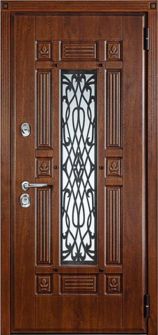 Сочетание надежной конструкции и декоративной выразительности делает входную металлическую дверь с ковкой и стеклом №20 удачным выбором для частных домов и коттеджей. Полотно собрано из профильных труб и усилено стальным листом толщиной 2 мм, дополнено ребрами жесткости и блокираторами, что обеспечивает прочность и устойчивость к нагрузкам. Два контура уплотнителя защищают от сквозняков и влаги, а по желанию доступна дополнительная шумо- и теплоизоляция. Отделка выполнена панелями МДФ ПВХ, стойкими к механическим повреждениям и перепадам температуры, благодаря чему дверь долго сохраняет свежий вид без потери эстетики. Особый акцент создают стеклянные вставки с коваными элементами, придающие входной группе парадность и индивидуальность. Такая дверь не только надежна в эксплуатации, но и подчеркивает стиль всего фасада. Входная металлическая дверь с ковкой и стеклом №20 от производителя: быстрое изготовление и монтаж в Звенигороде, индивидуальные размеры, широкий выбор материалов и фурнитуры, официальная гарантия до 10 лет.
