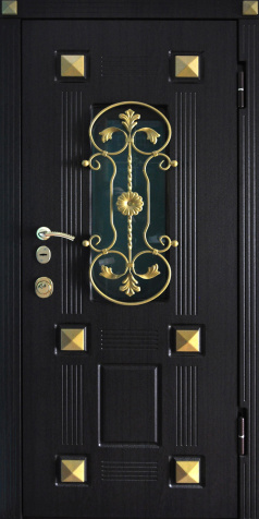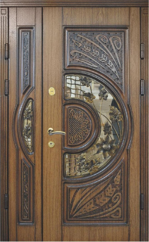 Красивая шпонированная дверь с надежной фурнитурой и ковкой "лоза" №33