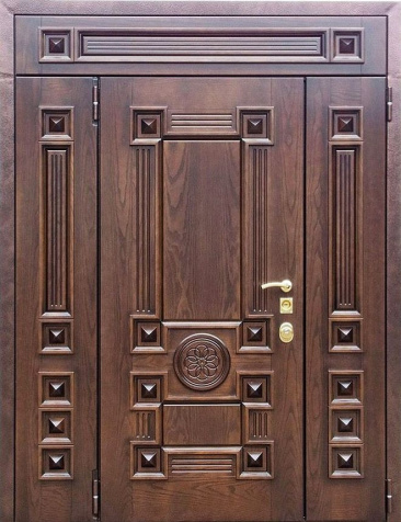 Металлическая дверь в широкий проем с боковыми фрамугами №26 — это идеальное решение для тех, кто ценит простор и свет в своем частном доме или коттедже. Массив дерева в отделке придает двери изысканный вид, создавая теплую атмосферу в вашем доме. Прочная конструкция из профильной трубы и металлического листа толщиной 2 мм обеспечивает долговечность, а ребра жесткости делают ее еще более устойчивой к внешним воздействиям. Боковые фрамуги добавляют дверям не только эстетической привлекательности, но и позволяют ввести больше света в помещение. Терморазрыв в коробке и полотне защищает от перепадов температуры, обеспечивая теплоизоляцию и долговечность. Металлическая дверь в широкий проем с боковыми фрамугами №26 от производителя: быстрое изготовление и монтаж в Звенигороде, индивидуальные размеры, широкий выбор материалов и фурнитуры, официальная гарантия до 10 лет.