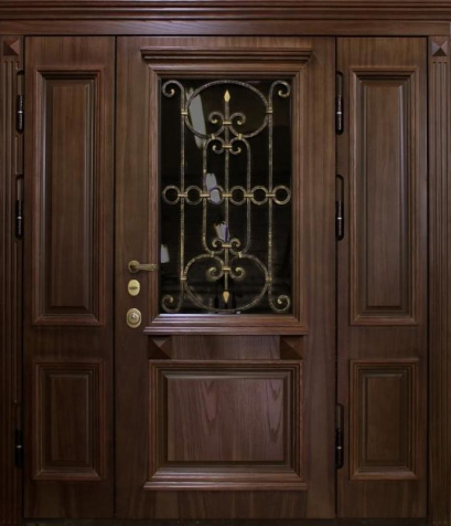 Входная металлическая дверь с порошковым покрытием, стеклом и ковкой в частный дом №27 — это не только надежность, но и стильное решение для вашего коттеджа или частного дома. Массив дерева, использованный в отделке снаружи и внутри, придаёт двери тепло и элегантность, в то время как прочная металлическая конструкция с профильной трубой и листом металла толщиной 2 мм обеспечивает долговечность и защиту. Стекло и кованые элементы добавляют изысканности, а порошковое покрытие защищает от внешних воздействий, сохраняя первоначальный вид. Терморазрыв в коробке и полотне помогает минимизировать теплопотери, а эффективная система уплотнения с двумя контурами гарантирует уют и тишину в вашем доме. Входная металлическая дверь с порошковым покрытием стеклом и ковкой в частный дом №27 от производителя: быстрое изготовление и монтаж в Звенигороде, индивидуальные размеры, широкий выбор материалов и фурнитуры, официальная гарантия до 10 лет.