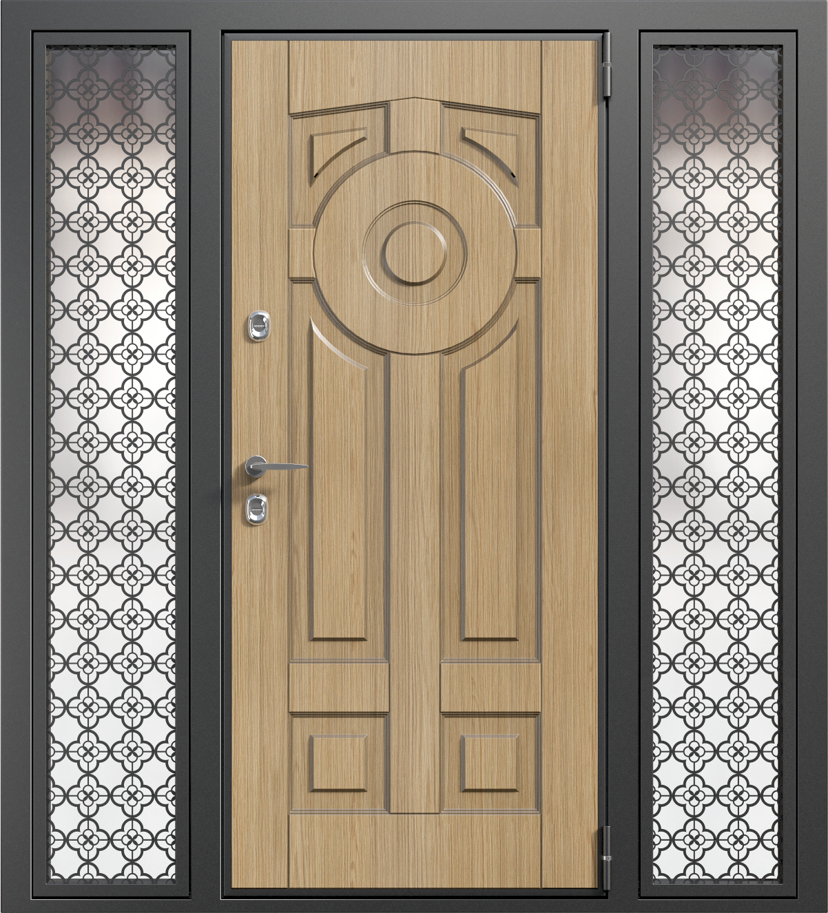 Входная металлическая дверь с резьбой для широкого проема №7 станет отличным выбором для установки в местах с большими входами. Благодаря прочной конструкции, выполненной из профильной трубы 50x25 мм и металла толщиной 2 мм, она обеспечит высокую безопасность и долговечность. Внешняя отделка из плиты МДФ придаёт двери стильный и элегантный вид, который будет гармонично сочетаться с разными архитектурными стилями. Замки Kale Kilit с тремя ригелями гарантируют защиту от взлома. Дополнительно дверь оснащена резиновым уплотнителем с двумя контурами, что помогает минимизировать шум и сохранить тепло. Несмотря на отсутствие терморазрыва, эта модель будет отличным решением для широких проемов в частных домах и коммерческих помещениях. Возможность комбинировать отделки и установить дополнительные элементы, такие как стеклопакет, зеркало или кованые детали, позволяет адаптировать дверь под любые требования. Входная металлическая дверь с резьбой для широкого проема №7 от производителя: быстрое изготовление и монтаж в Звенигороде, индивидуальные размеры, широкий выбор материалов и фурнитуры, официальная гарантия до 10 лет.